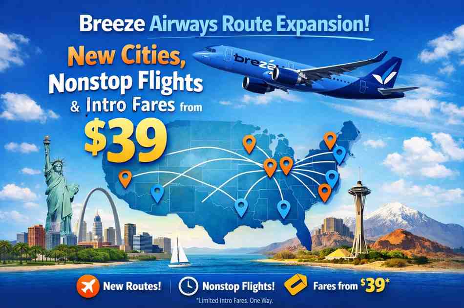 Breeze Airways Route Expansion: New Cities, Nonstop Flights & Intro Fares from $39